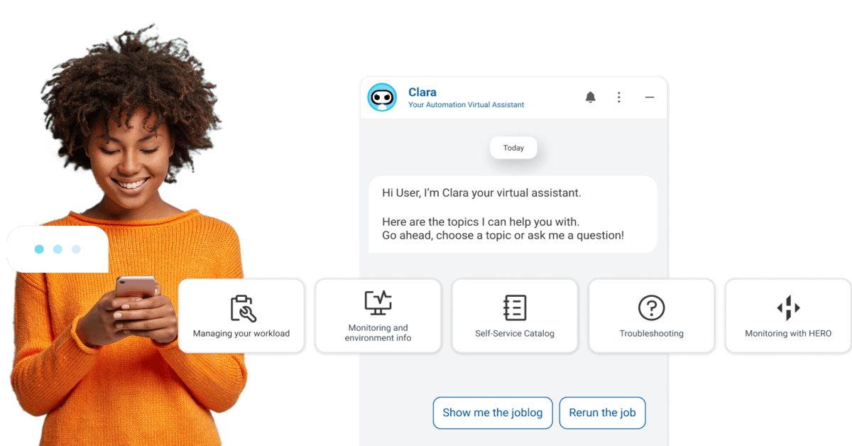 Intelligent virtual assistants, like HCL Clara, are designed explicitly for HCL Workload Automation. These assistants employ machine learning and artificial intelligence to comprehend human needs. They have an advantage over their humans because they are accessible around the clock. However, they vary from chatbots in that they can comprehend human languages.