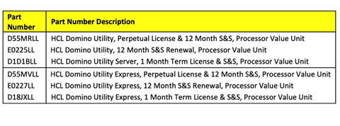 Today, June 29, 2023, HCLSoftware completes the move away from server-only licensing. Utility Server and Utility Server Express were based on Processor Value Unit licensing, an old license metric no longer relevant in a modern Cloud / Kubernetes world. Effective today, HCL is announcing the immediate End of Marketing (EOM) of the following part numbers. In addition, these parts and licenses will be End of Support on June 30, 2024: