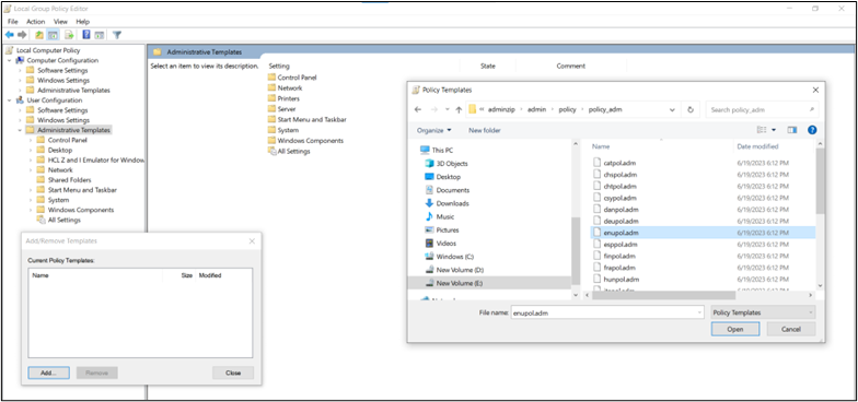 - Right click the Administrative Templates and select Add/Remove template.