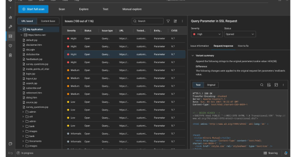 La nostra soluzione DAST è stata progettata per essere utilizzata da esperti di sicurezza e pentester per eseguire test di sicurezza su applicazioni web e API web. Il nostro strumento DAST esegue scansioni automatizzate che esplorano e testano le applicazioni web sulla base di uno dei più potenti motori di scansione disponibili. Con questo strumento per i test di penetrazione, è possibile assegnare rapidamente un triage e una priorità ai problemi, utilizzando una serie di informazioni fornite, tra cui le descrizioni dei test e le descrizioni dettagliate delle vulnerabilità.